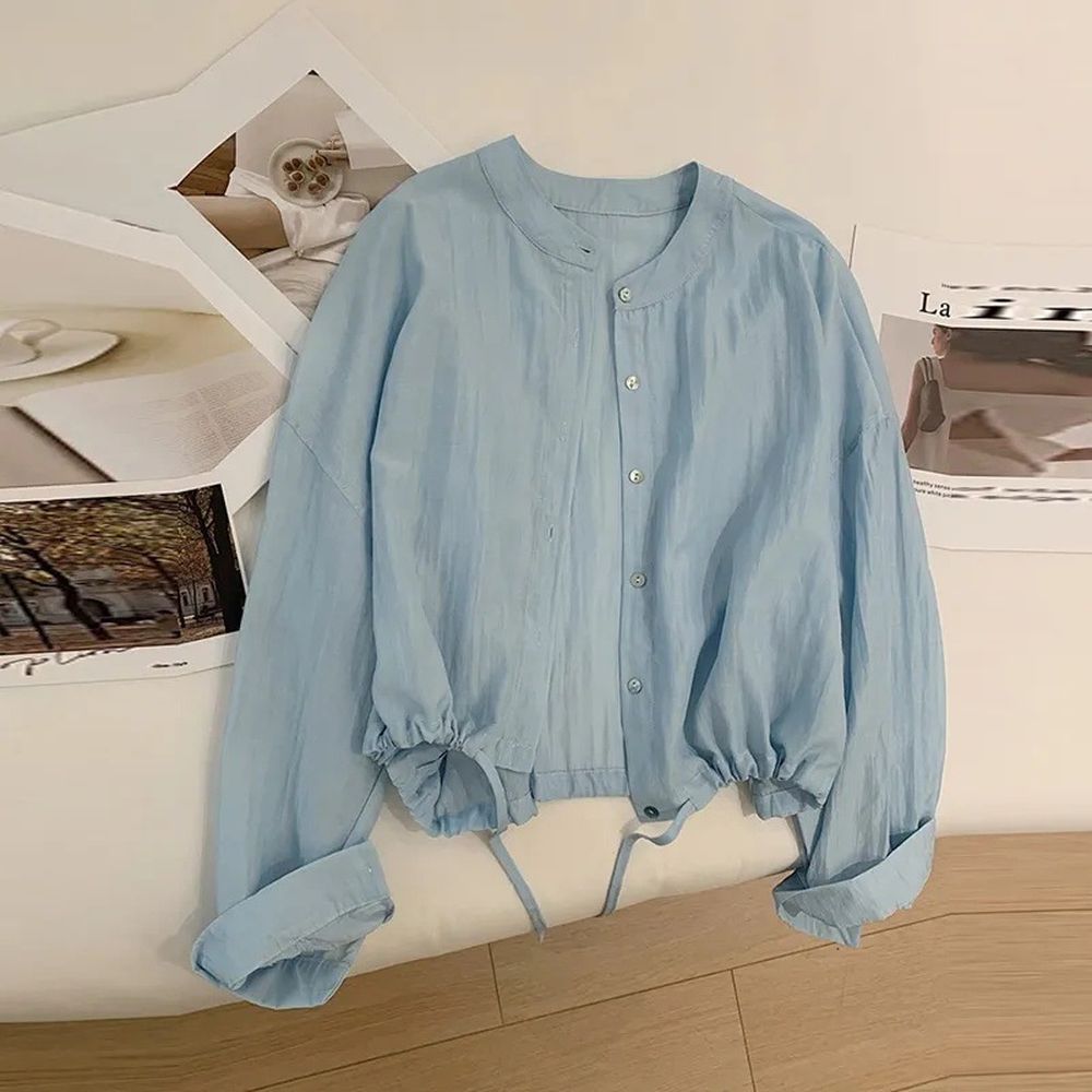 Retro Long Sleeve Shirt Women's Loose Casual Short Top