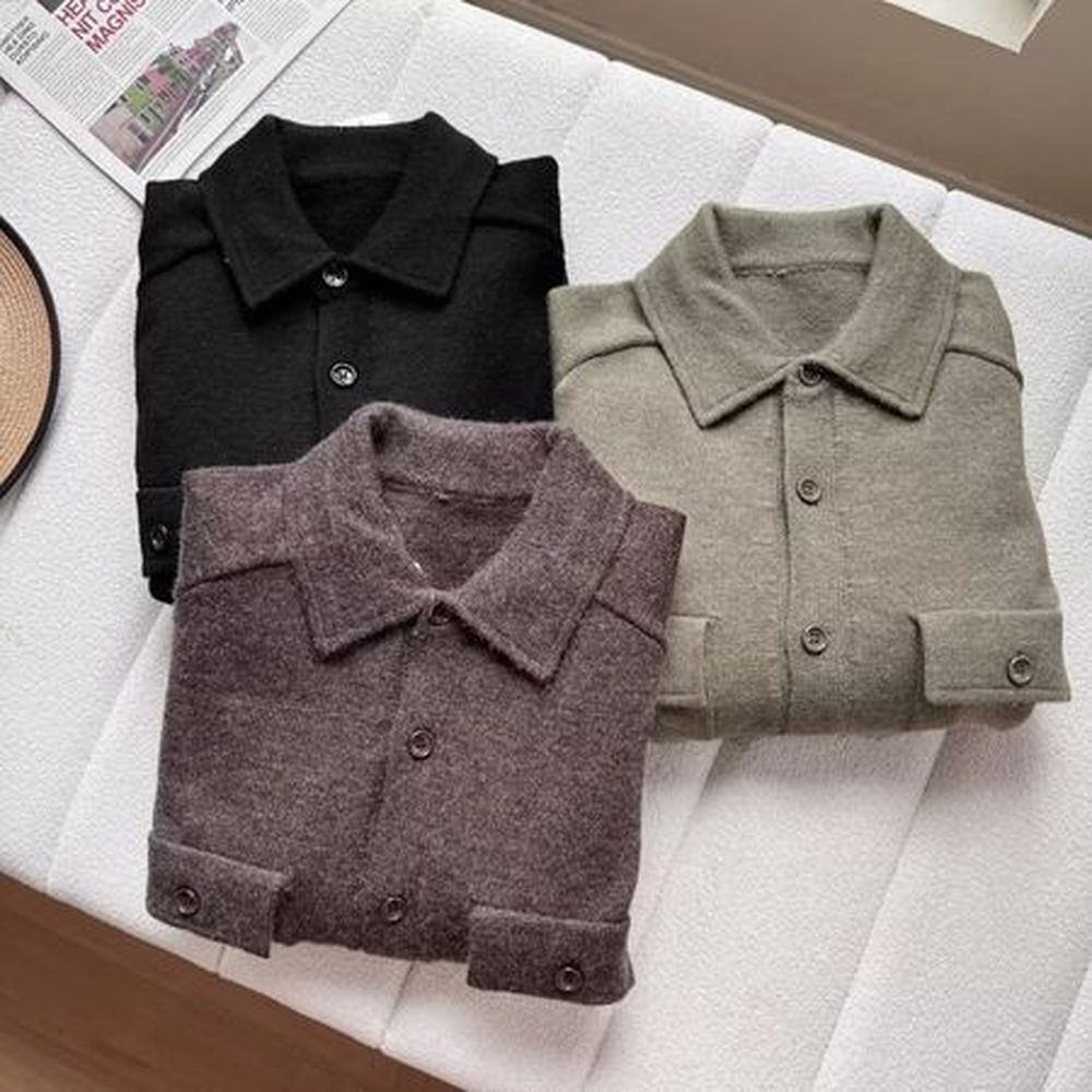 Men's Soft Knitted Fashion Casual Lapel Long Sleeve Coat Jacket