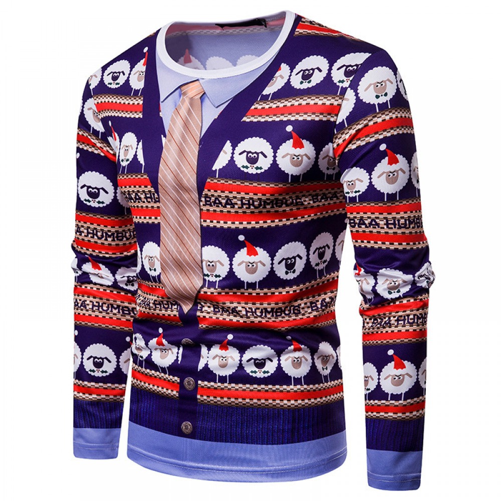 New 3D Personality Printing Fashion Men's Christmas Long-Sleeved T-Shirt