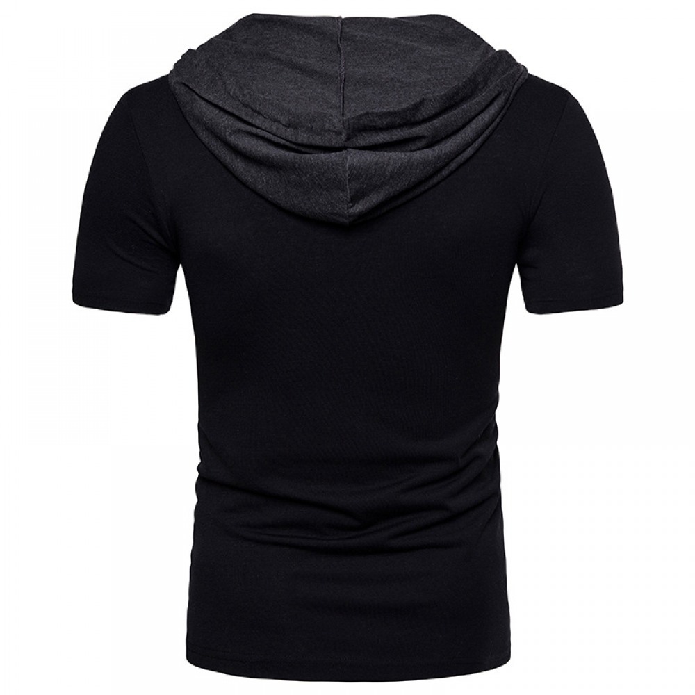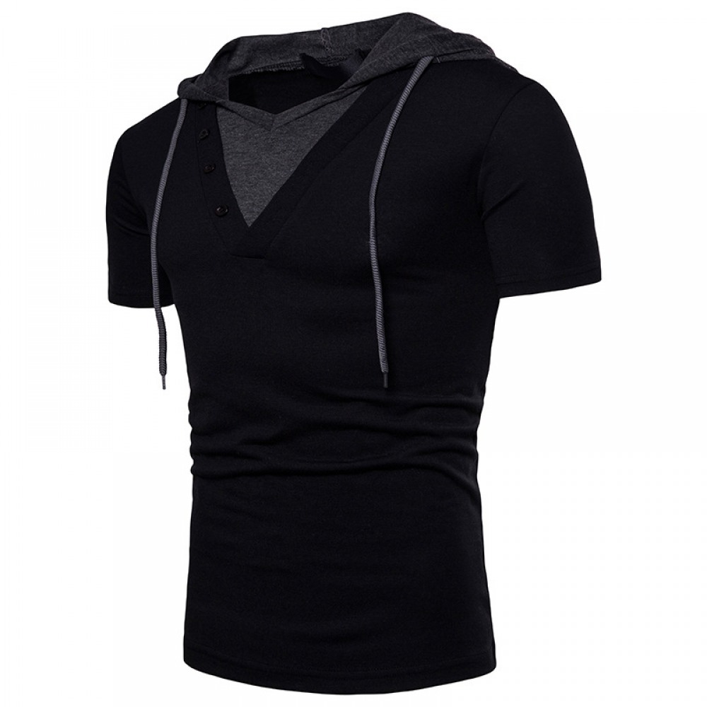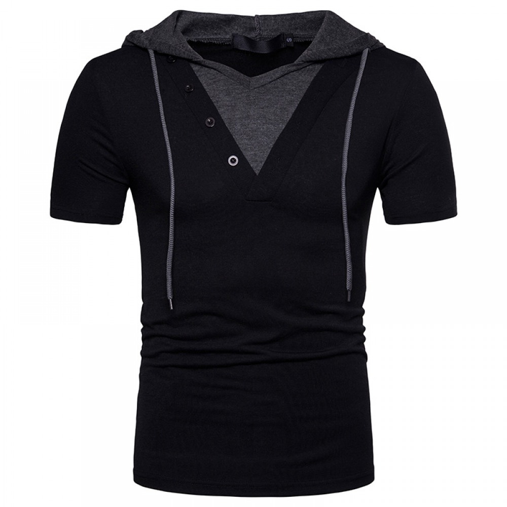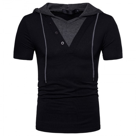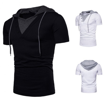 New Fake Two-Piece Design Men's European Size Hooded Short-Sleeved T-Shirt